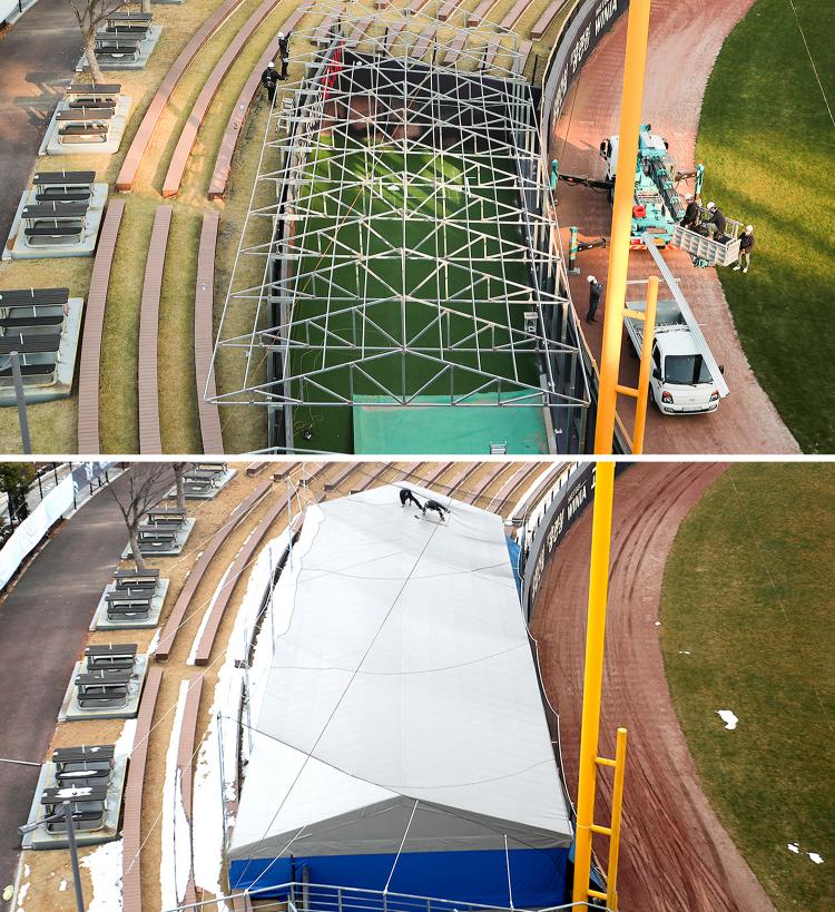 ǻó½º ¼±¼ö´ÜÀÇ ½ºÇÁ¸µÄ·ÇÁÁöÀÎ KIA 縰Àú½º Çʵå 1¡¤2±¸Àå ºÒÆæ ³× °÷¿¡µµ ¹æÇ³ ½Ã¼³À» ¼³Ä¡Çß°í, º¸Á¶±¸Àå Ææ½º Àüü¿¡ ¹Ù¶÷¸·À̸¦ µ¤¾î ÃßÀ§¿¡ ´ëºñÇß´Ù.