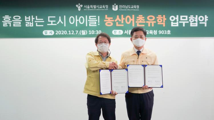 | Á¶Èñ¿¬(¿ÞÂÊ) ¼¿ï½Ã±³À°°¨°ú Àå¼®¿õ Àü³²±³À°°¨ÀÌ 7ÀÏ ¿ÀÀü ¼¿ï Á¾·Î±¸ ¼¿ï½Ã±³À°Ã»¿¡¼ ³óÃÌÀ¯ÇÐ ÃßÁøÀ» À§ÇÑ ¾÷¹«Çù¾àÀ» ¸Î°í ±â³äÃÔ¿µÇϰí ÀÖ´Ù. \'³óÃÌÀ¯ÇС¯Àº ¼¿ï ÇлýÀÌ ³óÃÌÀÇ Çб³¿¡ ´Ù´Ï¸é¼ ÀÚ¿¬-¸¶À»-Çб³ ¾È¿¡¼ °èÀýÀÇ º¯È, Á¦Ã¶ ¸Ô°Å¸®, °ü°è ¸Î±â µîÀÇ °æÇèÀ» ÅëÇØ »ýŽùÎÀ¸·Î ¼ºÀåÇϵµ·Ï Áö¿øÇÏ´Â ÇÁ·Î±×·¥ÀÌ´Ù. (»çÁø=¼¿ï½Ã±³À°Ã» Á¦°ø) |