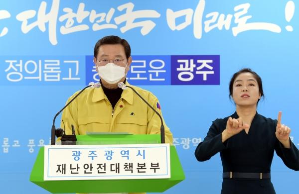 À̿뼷 ±¤ÁÖ½ÃÀåÀº 13ÀÏ ½Ãû ºê¸®Çνǿ¡¼ Äڷγª19 °ü·Ã ¿Â¶óÀÎ ºê¸®ÇÎÀ» °®°í "»çȸÀû °Å¸®µÎ±â Àå±âÈ·Î ÀÎÇØ ½Ã¹ÎµéÀÇ ÇǷΰ¨ÀÌ Ä¿Áö°í ÀÖ°í, ÀÚ¿µ¾÷ÀÚ¿Í ¼Ò»ó°øÀεéÀÇ °íÅëÀÌ °¡Áߵǰí ÀÖ´Â Á¡À» ½ÊºÐ ¹Ý¿µÇØ ¹æ¿ª°ú ¹Î»ýÀÇ ±ÕÇüÁ¡À» ã¾Æ Á¶Ä¡Çß´Ù"¸ç À̰°ÀÌ ¹àÇû´Ù.