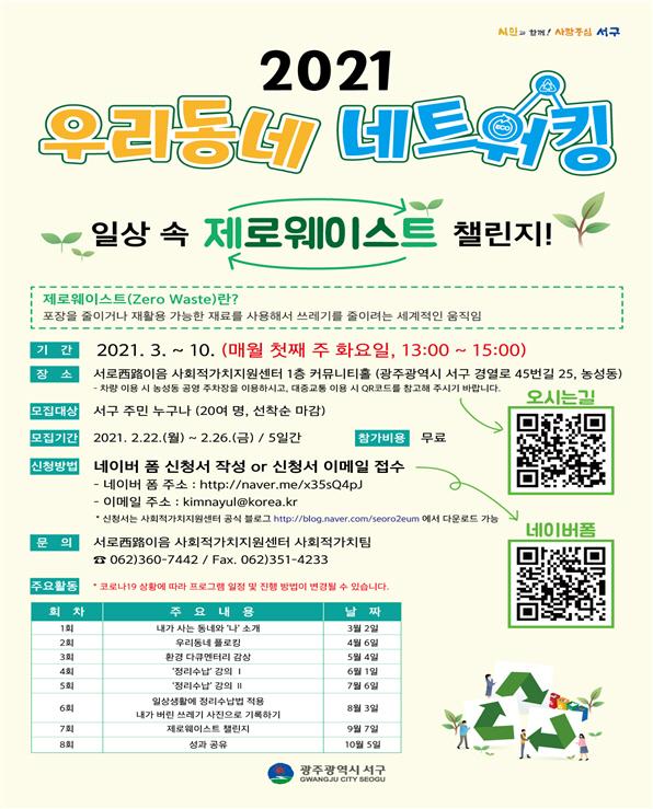 2021 ¿ì¸®µ¿³× ³×Æ®¿öÅ· ÇÁ·Î±×·¥Àº ±âÈÄÀ§±â ´ëÀÀ°ú °ü·ÃÇÑ ÃÖ±ÙÀÇ Æ®·»µå¸¦ ¹Ý¿µÇÏ¿© ¡ã»êÃ¥ÇÏ¸é¼ ¾²·¹±â¸¦ ÁÝ´Â ¡®Ç÷ÎÅ·¡¯, ¡ãÁ¤¸®¼ö³³ °ÀÇ(¥°, ¥±), ¡ãÁ¦·Î¿þÀ̽ºÆ® ÿ¸°Áö µî ÃÑ 8ȸÂ÷·Î ±¸¼º¡¤¿î¿µµÈ´Ù.