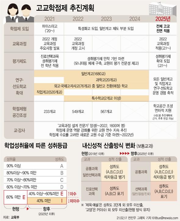 Áö³ÇØ¿¡´Â óÀ½À¸·Î ¸¶À̽ºÅͰí 51°³±³°¡ °í±³ÇÐÁ¡Á¦¸¦ µµÀÔÇß´Ù. Ư¼ºÈ°í´Â 2022³âºÎÅÍ ÇÐÁ¡Á¦¸¦ µµÀÔÇϸç ÀϹݰí´Â Á¦µµ¸¦ ´Ü°èÀûÀ¸·Î µµÀÔÇÏ°Ô µÈ´Ù. 2025³â¿¡´Â ÀϹݰí·Î ÀüȯµÉ ¿Ü±¹¾î°í¿Í ÀÚÀ²Çü»ç¸³°í¸¦ Æ÷ÇÔ Àüü °íµîÇб³¿¡ Àü¸é Àû¿ëµÉ ¿¹Á¤ÀÌ´Ù.