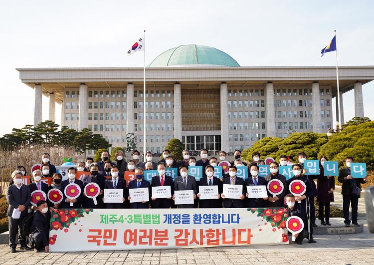 ±¹¹ÎÀÇÈû Á¦ÁÖµµ´çÀº ¡°Á¦ÁÖ4¡¤3ÀÇ ºñ±Ø°ú °íÅëÀÇ ¿ª»ç¸¦ ³Ñ¾î Á¦ÁÖ¿¡ ÁøÁ¤ÇÑ º½ÀÌ ¿À±â¸¦ ¹Ù¶ó´Â ¸¶À½À» ´ã¾Æ Á¦ÁÖ4¡¤3Ưº°¹ý Åë°ú¿¡ ȯ¿µÀÇ ¶æÀ» Ç¥ÇÑ´Ù¡±¸é¼µµ ¡°¾ÆÁ÷ Á¤ºÎ¿¡ ÀÇÇÑ º¸»ó Àǹ«È¸¦ ºñ·ÔÇØ, ÀûÁö ¾ÊÀº °úÁ¦µéÀÌ »õ·Ó°Ô ³õ¿©ÀÖ´Ù¡±¸ç ÀÌ¿¡ ´ëÇÑ Áغñ ÀÛ¾÷¿¡µµ ³ª¼¾ß ÇÑ´Ù°í °Á¶Çß´Ù.