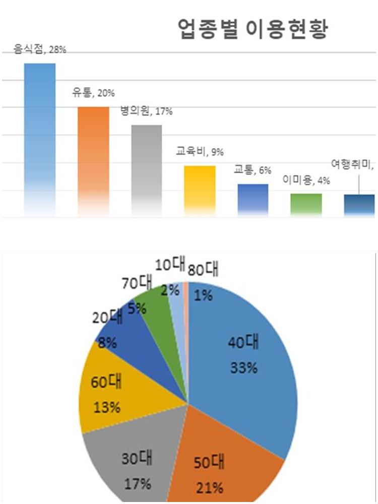 »ç¿ëó´Â À½½ÄÁ¡ÀÌ 2831¾ï ¿ø(28%)À¸·Î °¡Àå ¸¹°í, µÚ¸¦ ÀÌ¾î ¡ã¸¶Æ®¡¤½´ÆÛ µî À¯Åë¾÷(2029¾ï, 20%) ¡ãº´¡¤ÀÇ¿ø 17% ¡ã±³À°ºñ 9% ¡ã±³Åëºñ 6% ¡ãÀÌ¡¤¹Ì¿ë 4% ¡ã¿©ÇࡤÃë¹Ì 4% ¡ãÀÇ·ù¡¤Á¦È 3% ¼øÀÌ´Ù.