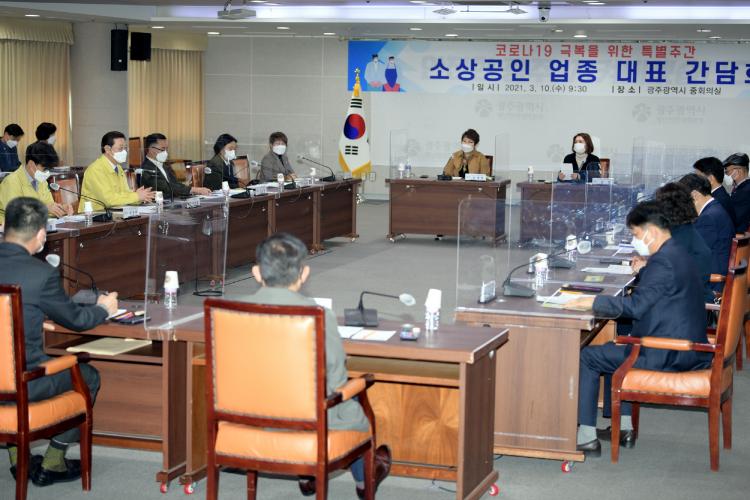 À̿뼷 ½ÃÀåÀº ¡°Äڷγª19¶ó´Â »çȸÀç³À¸·Î Å« ¾î·Á¿òÀ» °Þ°í ÀÖ´Â ¼Ò»ó°øÀεéÀÇ Àý¹ÚÇÑ ½ÉÁ¤À» ÃæºÐÈ÷ ÀÌÇØÇÑ´Ù¡±¸ç ¡°¼Ò»ó°øÀÎÀÌ Çàº¹ÇØ¾ß ±¤ÁÖ°¡ ÇູÇÏ´Ù´Â ¸¶À½À¸·Î ¿À´Ã °£´ãȸ¿¡¼ ÁֽŠÀǰߵéÀ» Á¤Ã¥¿¡ ¹Ý¿µÇØ Á¶¸¸°£ ´Ù°¢ÀûÀÎ Áö¿ø ´ëÃ¥À» °±¸Çϰڴ١±°í ¸»Çß´Ù.