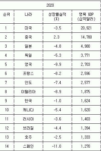 Áö³ÇØ Çѱ¹°æÁ¦ ¼ºÀå·üÀº ÁÖ¿ä 20°³±¹(G20) °¡¿îµ¥ Áß±¹, ÅÍŰ¿¡ À̾î 3À§¸¦ ±â·ÏÇß´Ù. G20 ȸ¿ø±¹ ³» ¼±Áø±¹ Áß¿¡¼´Â °¡Àå ¾çÈ£ÇÑ ½ÇÀûÀ̾ú´Ù.