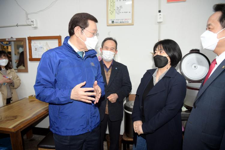| À̿뼷 ±¤ÁÖ±¤¿ª½ÃÀåÀÌ 17ÀÏ ¿ÀÀü Äڷγª19 Àå±âÈ·Î ¾î·Á¿òÀ» °Þ°í ÀÖ´Â ´ëÀνÃÀå ³» 'ÇØ¶ß´Â ½Ä´ç'À» ¹æ¹®ÇØ ÈÄ¿ø¹°Ç°À» Àü´ÞÇϰí ÀÖ´Ù./±¤ÁÖ±¤¿ª½Ã Á¦°ø |