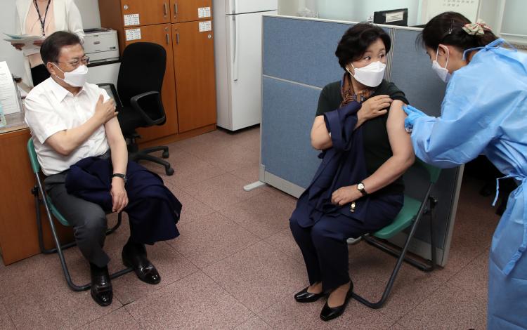 | ¹®ÀçÀÎ ´ëÅë·ÉÀÌ 23ÀÏ ¿ÀÀü ¼¿ï Á¾·Î±¸º¸°Ç¼Ò¿¡¼ ¾Æ½ºÆ®¶óÁ¦³×Ä«(AZ)»çÀÇ Äڷγª19 ¹é½ÅÀ» Á¢Á¾ ÈÄ ±èÁ¤¼÷ ¿©»çÀÇ Á¢Á¾À» ¹Ù¶óº¸°í ÀÖ´Ù. |