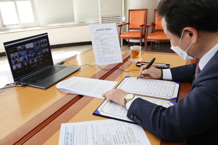 ÀÓÅà µ¿±¸Ã»ÀåÀº ¡°À̹ø Çù¾à½ÄÀº ±âÈÄÀ§±â ´ëÀÀ, Áö¿ª°æÁ¦¼ºÀå µî »õ·Î¿î Áö¿ªÁÖµµÀÇ ±×¸°´ºµô½Ã´ë¸¦ ¿©´Â ÀÇ¹Ì ÀÖ´Â Ãâ¹ßÁ¡ÀÌ´Ù¡±¸é¼ ¡°±¤ÁÖ¿¡¼ À¯ÀÏÇÏ°Ô ¼±Á¤µÈ ½º¸¶Æ® ±×¸°µµ½Ã Á¶¼º»ç¾÷ÀÌ ±¤ÁÖ»Ó¸¸ ¾Æ´Ï¶ó ´ëÇѹα¹ÀÇ ¹Ì·¡Çü ³ì»ö´ºµôÀ» ¼±µµÇÏ´Â ¼±Áø¸ðµ¨ÀÌ µÉ ¼ö ÀÖµµ·Ï ÃÖ¼±À» ´Ù Çϰڴ١±°í ¸»Çß´Ù.
