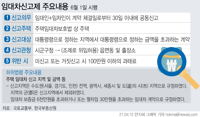 ÀÓ´ëÀΰú ÀÓÂ÷ÀÎÀÌ °è¾à ü°áÀϷκÎÅÍ 30ÀÏ À̳»¿¡ °è¾à ´ã´çÀÚ, º¸Áõ±Ý, ÀÓ´ë·á, °è¾à±Ý, ÀÓ´ë ±â°£, ½Å±Ô¡¤°»½Å µîÀÇ ³»¿ëÀ» ½Å°íÇØ¾ß ÇÑ´Ù. ÀÓ´ëÀÎÀ̳ª ÀÓÂ÷ÀÎ Áß ÇÑ ¸íÀÌ ½Å°í¸¦ ÇÏ¸é µÈ´Ù. Áß°³ÀÎÀ̳ª ¹ý¹«»ç µî¿¡°Ô À§ÀÓÀ» ÇÒ ¼öµµ ÀÖ´Ù.