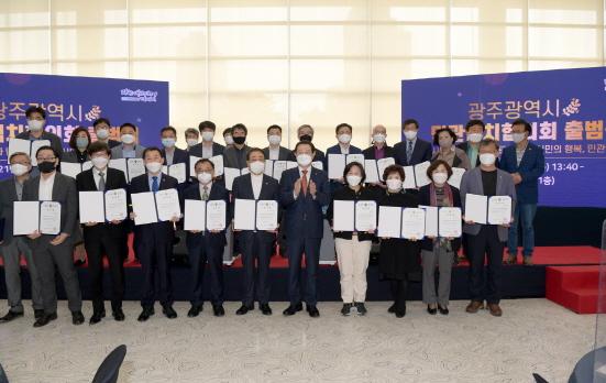 ¹Î°üÇùÄ¡ÇùÀÇȸ´Â À̿뼷 ½ÃÀå°ú ½Ã¹Î´ëÇ¥ÀÇ °øµ¿ÀÇÀå üÁ¦·Î ¿î¿µµÇ¸ç, ½Ã¹Î´ëÇ¥´Â (»ç)±¤ÁÖNGO½Ã¹ÎÀç´Ü ·ùÇÑÈ£ ÀÌ»çÀåÀÌ °øµ¿ÀÇÀåÀ¸·Î Ãß´ëµÆ´Ù. ÇùÀÇȸ´Â À̳¯ äÅÃÇÑ °øµ¿¼±¾ð¹®¿¡¼ "Áö±Ý ±¤ÁÖ´Â ¹ÎÁÖ¡¤Àαǵµ½Ã¿¡ °É¸ÂÀº ÁöÇý·Î¿î ÇØ¹ýÀ» ã¾Æ¾ß ÇÒ ¶§ÀÌ´Ù"¸é¼ "¹Î°üÇùÄ¡¸¦ ÅëÇØ ±¤ÁÖ¸¦ ½Ã¹ÎÀÇ »îÀÌ ÇູÇÑ µµ½Ã·Î ¸¸µå´Âµ¥ ÃÖ¼±À» ´ÙÇϰí Áö¼Ó°¡´ÉÇÑ ±¤ÁÖ °øµ¿Ã¼¸¦ ¸¸µå´Âµ¥ ¾ÕÀå¼¾ß ÇÑ´Ù"°í °Á¶Çß´Ù.