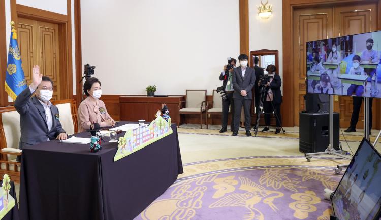 5ÀÏ Ã»¿Í´ë´Â ¾î¸°À̳¯À» ¸Â¾Æ Àü³¯ ¹® ´ëÅë·É ºÎºÎ°¡ ¾î¸°À̵é°ú '·£¼± ÃÊû ¸¸³²'À» °¡Áø ¿µ»óÀ» °ø°³Çß´Ù.