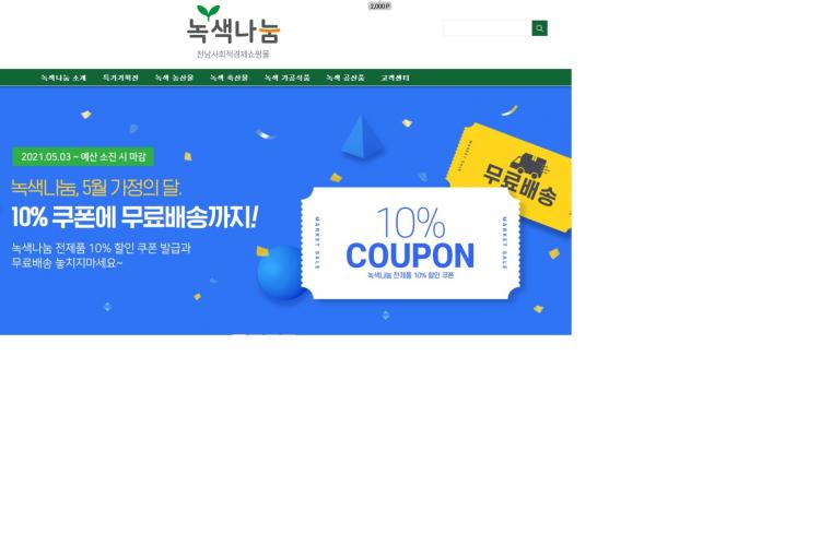 Àü³²µµ´Â Àü³² »çȸÀû°æÁ¦±â¾÷ ¼îÇθôÀÎ ¡®³ì»ö ³ª´®(www.greenanum.co.kr)¡¯ ½Å±Ô °¡ÀÔ À̺¥Æ®¿Í ÇÔ²² 10~15% ÇÒÀÎ ÄíÆù Á¦°ø, ¹«·á ¹è¼Û¼ºñ½º¸¦ ÇÑ´Ù.