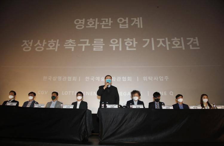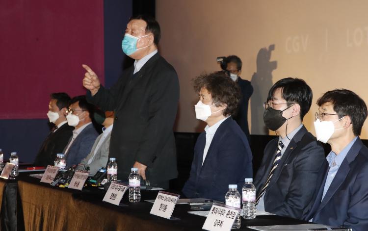 Çѱ¹»ó¿µ°üÇùȸ¸¦ ºñ·ÔÇØ Çѱ¹¿¹¼ú¿µÈ°üÇùȸ, ¸ÖƼÇ÷º½º 4»ç(CGV, ·Ôµ¥½Ã³×¸¶, ¸Þ°¡¹Ú½º, ¾¾³×Å¥), °¢ ¸ÖƼÇ÷º½º À§Å¹»ç¾÷ÁÖ ´ëÇ¥ µî ¿µÈ°ü ¾÷°è °ü°èÀÚµéÀº 12ÀÏ ¸Þ°¡¹Ú½º µ¿´ë¹®Á¡¿¡¼ ±âÀÚȸ°ßÀ» ¿¾î ¿µÈ»ê¾÷ Á¤»óȸ¦ À§ÇÑ Áö¿øÃ¥À» ¸¶·ÃÇØ ´Þ¶ó°í ¹àÇû´Ù.