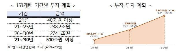 ¹ÝµµÃ¼»ê¾÷Çùȸ¿¡ µû¸£¸é ±¹³» 153°³ ¹ÝµµÃ¼ °ü·Ã ¾÷üµéÀº ¿ÃÇØºÎÅÍ ¿À´Â 2030³â±îÁö 10³â°£ ÃÑ 510Á¶¿ø ÀÌ»óÀ» ÅõÀÔÇÒ °èȹÀÌ´Ù. ¿ÃÇØ ÅõÀھ׸¸ 40Á¶¿ø ÀÌ»óÀÌ´Ù.
