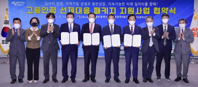 | À̿뼷 ±¤ÁÖ±¤¿ª½ÃÀåÀÌ 13ÀÏ ¿ÀÈÄ ½Ãû ÁßȸÀǽǿ¡¼ ¹®ÀÎ ºÏ±¸Ã»Àå, ±è»ïÈ£ ±¤»ê±¸Ã»Àå, ±è¿µÁß °í¿ë³ëµ¿ºÎ °í¿ëÁ¤Ã¥½ÇÀå°ú \'°í¿ë¾ÈÁ¤ ¼±Á¦´ëÀÀ ÆÐŰÁö Áö¿ø»ç¾÷\' ¾÷¹«Çù¾àÀ» ü°áÇÑ ÈÄ ±â³äÃÔ¿µÀ» Çϰí ÀÖ´Ù./±¤ÁÖ±¤¿ª½Ã Á¦°ø |