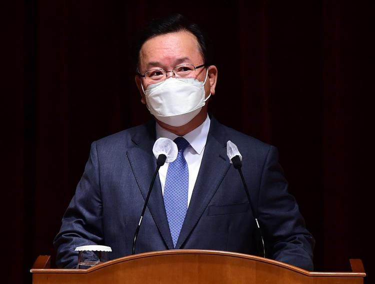 ±è ÃѸ®´Â À̳¯ ¿ÀÀü ±¤ÁÖ½Ãû¿¡¼ ÃëÀÓ ÈÄ Ã³À½À¸·Î ÁÖÀçÇÑ ±¹¹«È¸ÀÇ ¸ðµÎ¹ß¾ð¿¡¼ 'Äڷγª19 ±Øº¹°ú °æÁ¦ ¹Ýµî °¡¼ÓÈ, »çȸ ÅëÇÕ µî¿¡ Èû¾²°Ú´Ù'´Â Æ÷ºÎ¸¦ ¹àÈ÷°í, "ÀÌ·¯ÇÑ °úÁ¦¸¦ ½ÇÇöÇϱâ À§Çؼ´Â °øÁ÷»çȸÀÇ ¿ªÇÒÀÌ ¸Å¿ì Áß¿äÇÏ´Ù"¸ç À̰°ÀÌ ¸»Çß´Ù.
