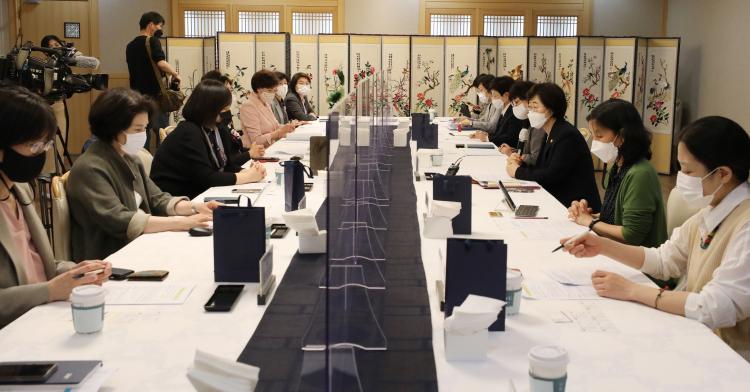 | Á¤¿µ¾Ö ¿©¼º°¡Á·ºÎ Àå°üÀÌ 24ÀÏ ¼¿ï Á¾·Î±¸ Á¤ºÎ¼¿ïû»ç ±¹¹«À§¿ø½Ä´ç¿¡¼ ¿¸° ¿©¼º´ÜüÀå °£´ãȸ¿¡ Âü¼®ÇØ ¹ß¾ðÇϰí ÀÖ´Ù. 2021.05.24. |