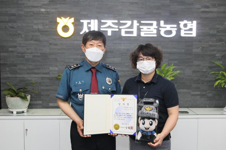 | °È²¼ö Á¦ÁÖ°æÂûûÀåÀÌ 2ÀÏ ¿ÀÀü Á¦ÁÖ°¨±Ö³óÇù û»ç·ÎÁöÁ¡À» ã¾Æ ÀüȱÝÀ¶»ç±â(º¸À̽ºÇǽÌ) ¹üÁË ¿¹¹æ¿¡ ±â¿©ÇÑ Á¦ÁÖ°¨±Ö³óÇù û»ç·ÎÁöÁ¡ °í¹ÎÁ¤ °úÀ庸¿¡°Ô ½Å°íº¸»ó±Ý°ú °¨»çÀåÀ» Àü´ÞÇÑ ÈÄ ±â³äÃÔ¿µÇϰí ÀÖ´Ù. Áö³ 4¿ù26ÀϺÎÅÍ \'º¸À̽ºÇÇ½Ì ¹üÁË ÁýÁß´ëÀÀ ±â°£\'À» ¿î¿ë ÁßÀÎ Á¦ÁÖ°æÂûûÀº Àú±Ý¸® ´ëÃâ µîÀ» ºùÀÚÇÑ ÇÇÀÇÀÚ 44¸íÀ» °Ë°ÅÇÏ°í ±× °¡¿îµ¥ 6¸íÀ» ±¸¼ÓÇß´Ù. (»çÁø=Á¦ÁÖ°æÂûû Á¦°ø) 2021.06.02. |