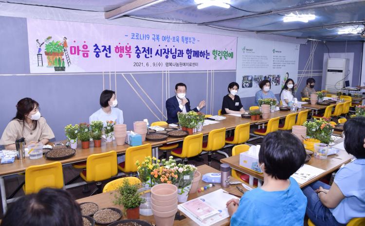 ÀÌ·¯ÇÑ ÇöÀåÀÇ ¾î·Á¿ò°ú ¹®Á¦¸¦ »ìÆìº¸±â À§ÇØ À̿뼷 ±¤ÁÖ½ÃÀåÀÌ À̳¯ Çູ³ª´®¿ø¿¹Ä¡·á¼¾Å͸¦ ã¾Æ Äڷγª19 »óȲ¿¡¼µµ Ãë¾÷À» ¸ñÇ¥·Î »õ·Î¿î µµÀü¿¡ ³ª¼´Â ¿©¼ºµéÀ» °Ý·ÁÇÏ°í °í¿ë ÇöÀå¿¡¼ °Þ´Â ¾Ö·Î»çÇ×À» ûÃëÇß´Ù. Äڷγª19 ±Øº¹À» À§ÇÑ ³× ¹øÂ° Ưº°ÁÖ°£ÀÎ ¡®¿©¼º¡¤º¸À° Ưº°ÁÖ°£¡¯ Ȱµ¿ÀÇ ÀÏȯÀÌ´Ù.