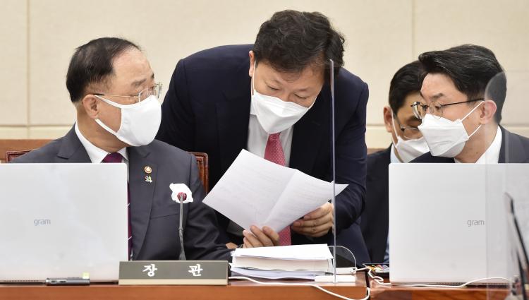 | È«³²±â °æÁ¦ºÎÃѸ® °â ±âȹÀçÁ¤ºÎ Àå°üÀÌ 23ÀÏ ¼¿ï ¿©Àǵµ ±¹È¸¿¡¼ ¿¸° ±âȹÀçÁ¤À§¿øÈ¸ ÀüüȸÀÇ¿¡ Ãâ¼®ÇØ ÀڷḦ »ìÆìº¸°í ÀÖ´Ù. (°øµ¿ÃëÀç»çÁø) 2021.06.23. |
