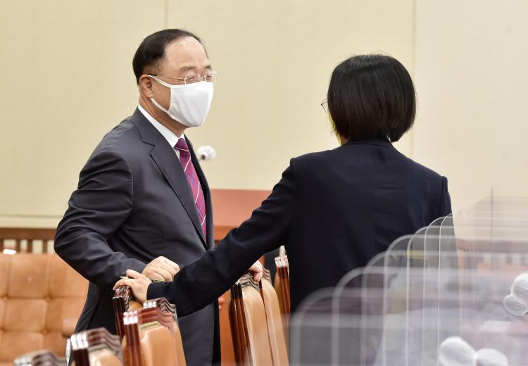| È«³²±â °æÁ¦ºÎÃѸ® °â ±âȹÀçÁ¤ºÎ Àå°üÀÌ 23ÀÏ ¼¿ï ¿©Àǵµ ±¹È¸¿¡¼ ¿¸° ±âȹÀçÁ¤À§¿øÈ¸ ÀüüȸÀÇ¿¡ Ãâ¼®ÇØ Á¤ÀÇ´ç ÀåÇý¿µ ÀÇ¿ø°ú ´ëÈÇϰí ÀÖ´Ù. (°øµ¿ÃëÀç»çÁø) 2021.06.23. |