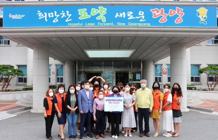 ±¤¾çµ¿¹é·ÎŸ¸®Å¬·´Àº ½Ò 450kgÀ» (Àç)»ç¶û³ª´®º¹ÁöÀç´Ü¿¡ ±âŹÇßÀ¸¸ç, ±âŹµÈ ½ÒÀº ±¤¾çÀå¾ÖÀÎÀÚ¸³»ýȰ¼¾ÅÍ, Çѱ¹½Ã°¢Àå¾ÖÀο¬ÇÕȸ ±¤¾ç½ÃÁöȸ, Çູ³ëÀÎÀç°¡¼¾ÅÍ¿¡ °¢°¢ 150kg¾¿ Àü´ÞµÉ °èȹÀÌ´Ù.