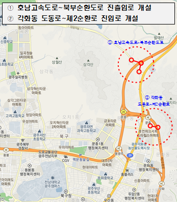 ¢º¡®È£³²°í¼Óµµ·Î(µ¿±¤ÁÖ¿ä±Ý¼Ò)~ºÏºÎ¼øÈ¯µµ·Î¡¯ ÁøÃâÀÔ·Î ¼³Ä¡»ç¾÷Àº µ¿±¤ÁÖ¿ä±Ý¼Ò¸¦ Áö³ª 2018³â 5¿ù °³ÅëµÈ ¡®ºÏºÎ¼øÈ¯µµ·Î 2°ø±¸(½Å ±¤ÁÖ±³µµ¼Ò ¾Õ±æ)¡¯¿Í È£³²°í¼Óµµ·Î¸¦ ½ÅÈ£ ¾øÀÌ Á÷°áÇÏ´Â »ç¾÷ÀÌ´Ù.