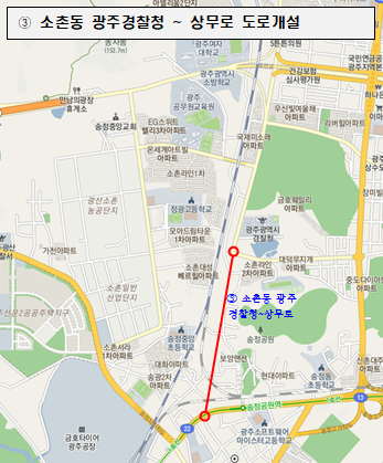 ¢º¡®¼ÒÃ̵¿ ±¤ÁÖ°æÂûû~»ó¹«·Î ¼ÛÁ¤°ø¿ø ¿·¡¯ µµ·Î°³¼³ »ç¾÷Àº »ç¾Ï·Î¸¦ ¿ìȸÇÏ´Â ±¤ÁÖÁö¹æ°æÂûû ¾Õ~»ó¹«·Î 1§° ±¸°£À» 4Â÷·Î·Î ½Å¼³ÇÏ´Â »ç¾÷ÀÌ´Ù. ÀÌ µµ·Î°¡ °³¼³µÇ¸é ¼ÛÁ¤¿ª°ú Çϳ²Áö±¸°£ Á¢±Ù¼ºÀÌ °³¼±µÉ Àü¸ÁÀÌ´Ù.
