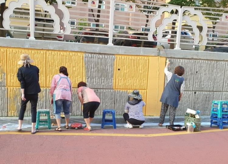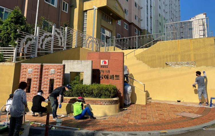 µÎ ¾ÆÆÄÆ®´Â ³ëÈÄÈµÈ ±æ°¡ ´ãº¶ô°ú ¾ÆÆÄÆ® ÀÔ±¸ º®¸é¿¡ Ư»ö ÀÖ´Â º®È¸¦ ±×¸®°í, ÁÖº¯ ȯ°æÁ¤È Ȱµ¿À» ½Ç½ÃÇÏ´Â µî ¾Æ¸§´Ù¿î °æ°ü Á¶¼ºÀ» À§ÇØ ÁֹεéÀÌ ÈûÀ» º¸Å ±¸½½¶¡À» È긮°í ÀÖ´Ù.