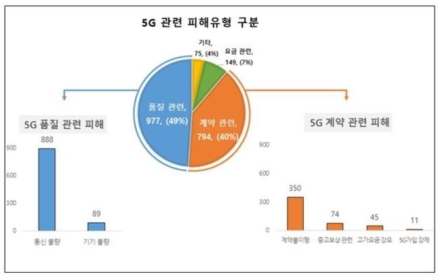 Áö³ÇØ Á¢¼öµÈ 5G °ü·Ã ¼ÒºñÀÚ ÇÇÇØ´Â À¯Çüº°·Î Åë½ÅºÒ·®¡¤±â±âºÒ·® µî ǰÁú °ü·Ã ÇÇÇØ°¡ 997°Ç(49%)À¸·Î °¡Àå ¸¹Àº °ÍÀ¸·Î ÀüÇØÁ³´Ù. °è¾àºÒÀÌÇࡤ°è¾àÁ¶°Ç ¼³¸í ¹ÌÈí µî °è¾à °ü·Ã ÇÇÇØ´Â 794°Ç(39.8%), ºÎ°¡¼ºñ½º µî ¿ä±Ý °ü·Ã ÇÇÇØ´Â 149°Ç(7.5%), º¸Çè µî °ü·Ã ±âŸ ³»¿ëÀº 75°Ç(3.8%)ÀÎ °ÍÀ¸·Î Áý°èµÆ´Ù.