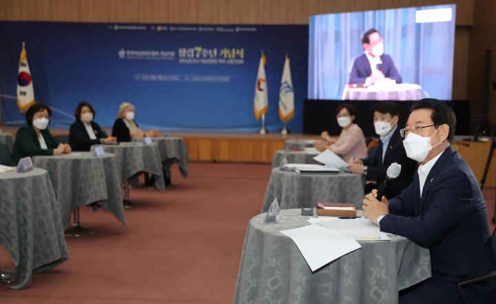 À̳¯ ¼ÒÅë °£´ãȸ´Â Äڷγª19 »óȲÀ» °í·Á, Àü³²Áß¼Ò±â¾÷ÁøÈï¿ø¿¡ ¸¶·ÃµÈ ÇöÀå °£´ãȸÀå°ú ÇÔ²² ºñ´ë¸é ¿Â¶óÀÎÀ¸·Î ´Ù¼öÀÇ ¿©¼º°æÁ¦Àΰú ±â¾÷ Á¾»çÀÚ°¡ ½Ö¹æÇâÀ¸·Î ¼ÒÅëÇÏ´Â ¹æ½ÄÀ¸·Î ÀÌ·ïÁ³´Ù. °£´ãȸ ÈÄ¿¡´Â Àü³²Áöȸ ⸳ 7Áֳ⠱â³ä½Äµµ °¡Á³´Ù.