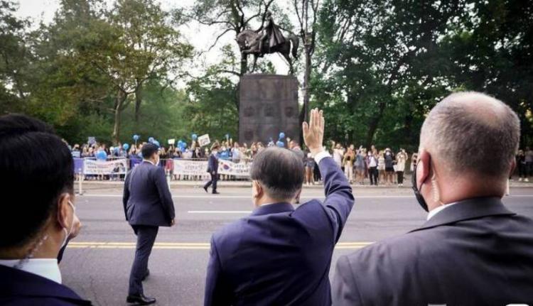 | ¡ãÁ¦76Â÷ À¯¿£ÃÑȸ °íÀ§±Þ ȸÀÇ Âü¼®Â÷ ¹Ì±¹À» ¹æ¹®ÇÑ ¹®ÀçÀÎ ´ëÅë·ÉÀÌ 19ÀÏ ¿ÀÈÄ(ÇöÁö½Ã°£) ´º¿å ¼÷¼Ò ¾Õ¿¡¼ ±³¹ÎµéÀÇ È¯¿µ Àλ翡 È´äÇϰí ÀÖ´Ù. (û¿Í´ë ÆäÀ̽ººÏ) |