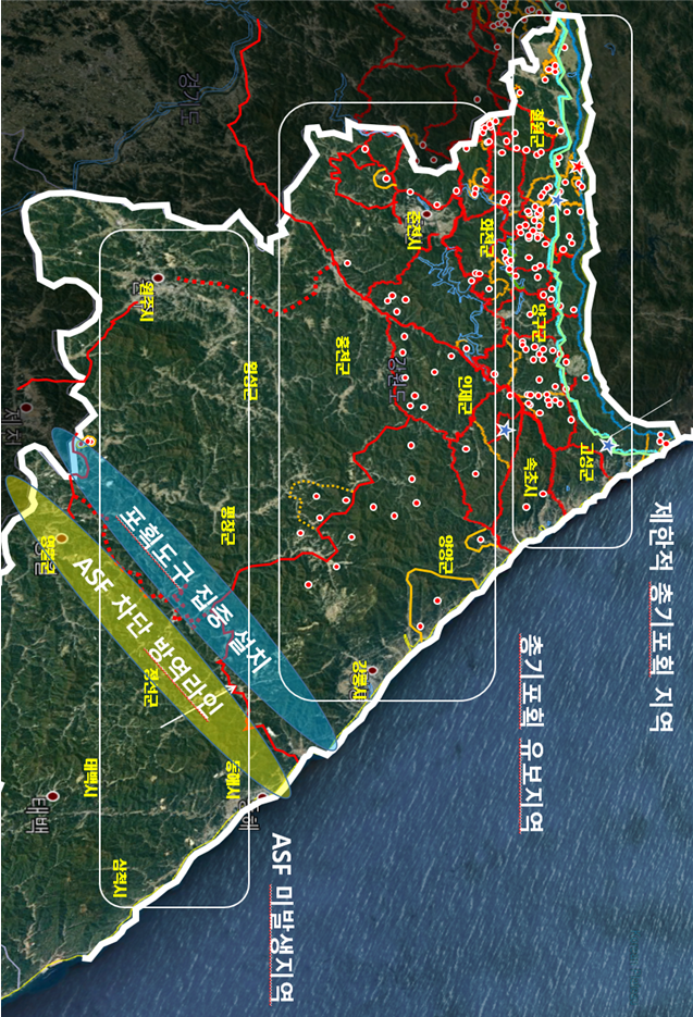 ÀÌ¿¡ µû¶ó, °¿øµµ¿¡¼´Â ASFÀÇ Àü±¹Àû È®»êÀ» ¸·±â À§ÇØ ¿À´ÃºÎÅÍ ³»³â 3¿ù¸»±îÁö °¿ø ³²ºÎ±ÇÀ» Áß½ÉÀ¸·Î ASF Â÷´Ü¶óÀÎÀ» ±¸ÃàÇϰí, ¾ß»ý¸äµÅÁö °³Ã¼¼öÀÇ È¹±âÀûÀÎ °¨ÃàÀ» À§ÇØ ¡®µ¿Àý±â ¾ß»ý¸äµÅÁö ÁýÁ߯÷ȹ ´ëÃ¥¡¯À» ÃßÁøÇÑ´Ù°í ¹àÇû´Ù.