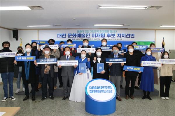 ´ëÀü ¹®È¿¹¼úÀεéÀº 10ÀÏ ¿ÀÀü ´õºÒ¾î¹ÎÁÖ´ç ´ëÀü½Ã´ç¿¡¼ ±âÀÚȸ°ßÀ» ¿¾î ÀÌÀç¸í Èĺ¸ ÁöÁö¸¦ ¼±¾ðÇß´Ù. À̳¯ ÁöÁö¼±¾ð¿¡´Â ´õºÒ¾î¹ÎÁÖ´ç ´ëÇѹα¹´ëÀüȯ¼±°Å´ëÃ¥À§¿øÈ¸ ¹®È°±¹ ´ëÀüÀ§¿øÈ¸ ¹Úö¿õ¡¤±èÇÑ¼Ö »óÀÓÀ§¿øÀå°ú À§¿øÈ¸ À§¿øµé, Ȳ¿îÇÏ ÃѰý¼±´ëº»ºÎÀå, Á¶¼ºÄ¥ ´ëÀü±¤¿ª½ÃÀÇ¿ø µîÀÌ Âü¼®Çß´Ù.