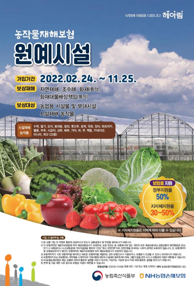 ¿ÃÇØ ´ë»óǰ¸ñÀº 50ǰ¸ñÀ¸·Î ǰ¸ñº°·Î °¡ÀԽñⰡ ´Ù¸£¸ç 2¿ù 24ÀϺÎÅÍ 11¿ù 25ÀϱîÁö ³ó¾÷¿ë½Ã¼³, ½Ã¼³ÀÛ¹°, ¹ö¼¸Àç¹è»ç, ¹ö¼¸ÀÛ¹° °¡ÀԱⰣÀ¸·Î Áö¿ª³óÇù°ú ǰ¸ñ³óÇùÀ» ÅëÇØ °¡ÀÔ½ÅûÀ» ÇÏ¸é µÈ´Ù.