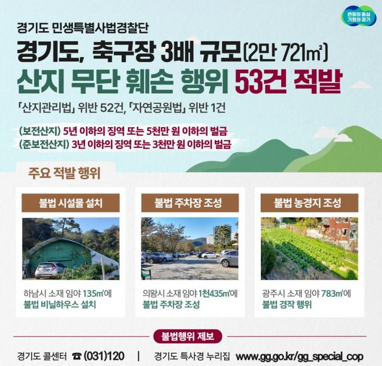 ±è¹Î°æ °æ±âµµ ¹Î»ýƯº°»ç¹ý°æÂû´ÜÀåÀº ¡°»ê¸²°ú ÀÚ¿¬°ø¿ø ³» ºÒ¹ýÇàÀ§¿¡ ¼±Á¦ÀûÀ¸·Î ´ëÀÀÇØ ÀÚ¿¬È¯°æÀ» º¸ÀüÇÏ°í µµ¹ÎÀÌ ÄèÀûÇÑ ÀÚ¿¬È¯°æÀ» ´©¸± ¼ö ÀÖµµ·Ï ³ë·ÂÇϰڴ١±°í ¸»Çß´Ù.
