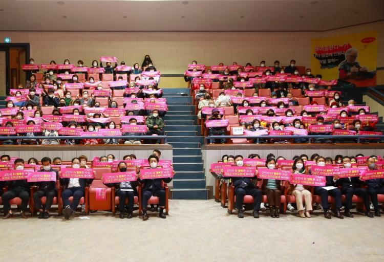 À̳¯ Çà»ç¿¡´Â Áö¿ªÈ°µ¿°¡¿Í ÁֹΠ300¿© ¸íÀÌ Âü¼®Çß´Ù. ¡®±º¹ÎÀÌ ´õ ÇູÇÑ °î¼º¡¯À̶ó´Â ½½·Î°Ç ¾Æ·¡ Äڷγª19 Àå±âȷΠħüµÈ ¸¶À»¿¡ Ȱ·ÂÀ» ºÒ¾î³Ö±â À§ÇØ ¸¶·ÃÇÑ Çà»ç¿´´Ù. ´Ù¾çÇÑ ¸¶À» °øµ¿Ã¼µéÀÌ ¼·ÎÀÇ È°µ¿ »ç·Ê¸¦ °øÀ¯ÇÏ°í °Ý·ÁÇß´Ù.