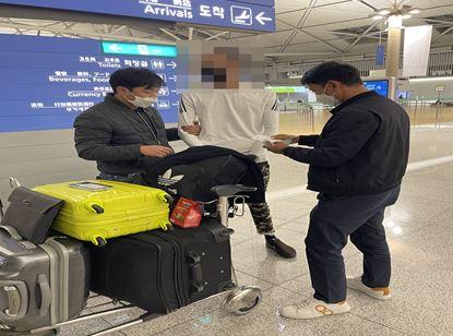 | Ãâ±¹Á÷Àü °øÇ׿¡¼ üÆ÷ÇÑ ´ë¸¶ÆÇ¸Å»ó(D)<»çÁø=Àü³²°æÂû> |