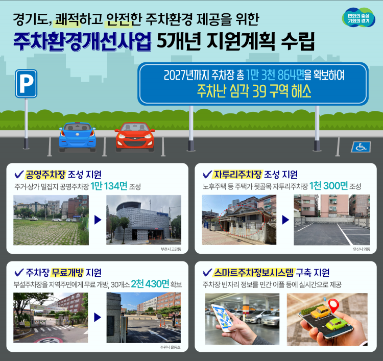 °æ±âµµ´Â ÀÌ·¯ÇÑ ³»¿ëÀ» ´ãÀº ¡®°æ±âµµ ÁÖÂ÷ȯ°æ°³¼±»ç¾÷ 5°³³â(2023~2027³â) Áö¿ø°èȹ¡¯À» ¼ö¸³, µµ¹Î¿¡°Ô ÄèÀûÇÏ°í ¾ÈÀüÇÑ ÁÖÂ÷ȯ°æ Á¦°øÀ» À§ÇØ 4°³ ÇٽɰúÁ¦¸¦ ÁýÁß ÃßÁøÇÑ´Ù°í 10ÀÏ ¹àÇû´Ù.