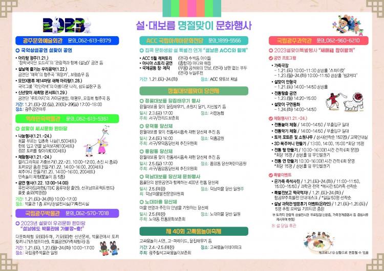 ±¹¸³±¤ÁÖ¹Ú¹°°ü ÀÏ´ë¿¡¼´Â ¡®2023³â ¼³¸ÂÀÌ ¿ì¸®¹®È ÇѸ¶´ç, ¼³³¯¿¡µµ ¹Ú¹°°ü¿¡ °¡º¼±ø~Ãæ!¡¯ÀÌ ¿¸®¸ç ´Ù¹®È üÇè, ½ºÅÆÇÁ ¹Ì¼Ç, °¡Á·Ã¼Çè±Ø µî °¡Á· ¸ðµÎ°¡ ÇÔ²² ÇÏ´Â ¼³¸ÂÀÌ Çà»ç°¡ ÁøÇàµÈ´Ù.