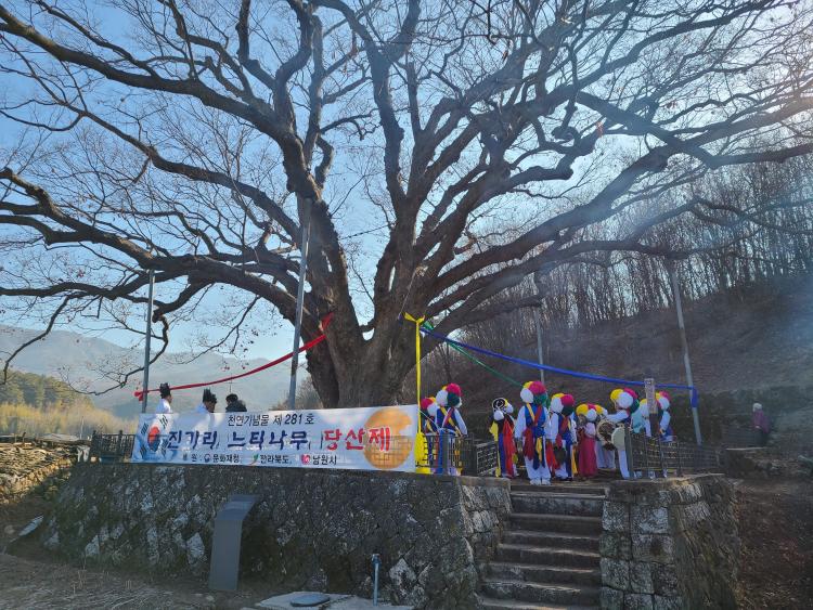 1982³â¿¡ õ¿¬±â³ä¹°·Î ÁöÁ¤µÈ ¡®³²¿ø Áø±â¸® ´ÀƼ³ª¹«¡¯´Â ¼ö·É ¾à 600³â Á¤µµ·Î ÃßÁ¤µÇ¸ç, ´Ü¾ç ¿ì¾¾°¡ óÀ½ ¸¶À»¿¡ µé¾î¿Ã ¶§ ½ÉÀº °ÍÀ¸·Î ÀüÇØÁø´Ù. ´ÀƼ³ª¹«ÀÇ Å©±â´Â ³ôÀÌ ¾à 20m, °¡½¿³ôÀÌÀÇ µÑ·¹°¡ ¾à 9.3m¿¡ À̸£¸ç, Á¶¼± ¼¼Á¶ ¶§ ÈûÀÌ Àå»çÀÎ ¿ì°ø(éàÍø)À̶ó´Â ¹«°üÀÌ µÞ»ê¿¡¼ ³ª¹«¸¦ »Ì¾Æ´Ù°¡ ¸¶À» ¾Õ¿¡ ½É°í ¸¶À»À» ¶°³ª¸é¼ ³ª¹«¸¦ Àß º¸È£Ç϶ó°í Çß´Ù´Â Àü¼³ÀÌ ³»·Á¿À°í ÀÖ´Ù.