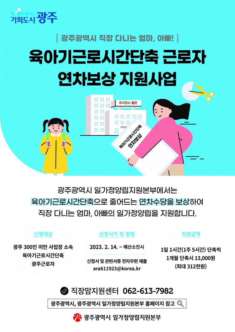 ¿ÃÇØ Áö¿ø ´ë»óÀº ±¤ÁÖ ¼ÒÀç 300ÀÎ ¹Ì¸¸ »ç¾÷Àå ¼Ò¼ÓÀ¸·Î, ¿ÃÇØ ¡®À°¾Æ±â ±Ù·Î½Ã°£ ´ÜÃà Á¦µµ¡¯¸¦ ÀÌ¿ëÇϰí À°¾Æ±â ±Ù·Î½Ã°£ ´ÜÃà ±Þ¿©¸¦ ¹Þ´Â ±Ù·ÎÀÚ´Ù.