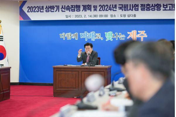 Á¦ÁÖµµ´Â ÀÌ¿Í °ü·ÃÇØ 14ÀÏ ¿ÀÀü Á¦ÁÖµµÃ» º»°ü 2Ãþ »ï´ÙȦ¿¡¼ ¿À¿µÈÆ µµÁö»ç ÁÖÀç·Î 2023³â ½Å¼ÓÁýÇà °èȹ ¹× 2024³â ±¹ºñ»ç¾÷ ÀýÃæ»óȲ º¸°íȸ¸¦ °³ÃÖÇß´Ù.