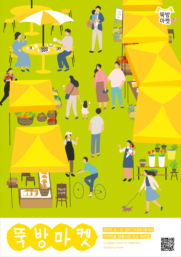 ¹æ¹®°´µéÀº ¿µ¿îõ°ú °î¼ºÃµÀ¸·Î µÑ·¯½ÎÀÎ ¶Ò¹æ¸¶ÄÏ¿¡¼ º¢³ª¹«¸¦ ±×´Ã »ï¾Æ ´Ù¾çÇÑ ¼ö°ø¿¹Ç°°ú ¸Ô°Å¸®, ³ó¼ö»ê °¡°øÇ°À» ¸¸³ªº¼ ¼ö ÀÖ´Ù. ¸¶ÄÏÀÌ ¿¸®´Â ¾à 300m µÏ¹æ °Å¸®¿¡´Â ¸Åȸ Æò±Õ 60ÆÀ ÀÌ»óÀÇ ¼¿·¯°¡ Âü¿©ÇØ È°¹ßÈ÷ ¿î¿µµÈ´Ù. âÀÛÀÚµéÀÇ µ¶Æ¯ÇÑ °¨¼ºÀ» ´ãÀº µðÀÚÀÎ ¼Òǰ, ³óÀå¿¡¼ Á÷Á¢ ¸¸µç ¼öÁ¦ ¿ä°ÅÆ®, Á÷Á¢ Àç¹èÇÑ °Ç°ÇÑ Áö¿ª³ó»ê¹°ÀÌ ÀαⰡ ³ô´Ù.