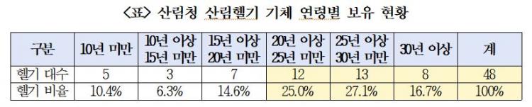 ´õºÒ¾î¹ÎÁÖ´ç ±è½Â³² ÀÇ¿øÀÌ »ê¸²Ã»ÀÌ Á¦ÃâÇÑ ¡®»ê¸² Çï±â º¸À¯ÇöȲ¡¯À» ºÐ¼®ÇÑ °á°ú »ê¸²Ã»ÀÌ º¸À¯ÇÑ Çï±â 48´ë Áß Á¦ÀÛµÈ Áö 20³âÀÌ °æ°úÇÑ ³ëÈÄ Çï±â°¡ ¹«·Á 33´ë·Î ¾à 69%¸¦ Â÷ÁöÇÑ °ÍÀ¸·Î È®ÀεƴÙ.