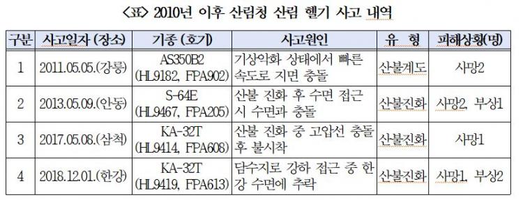ƯÈ÷ 2017³â 5¿ù »êºÒ ÁøÈ Áß Ãß¶ôÇÑ ·¯½Ã¾Æ»ê KA-32T Çï±â(HL9414)´Â 1995³â¿¡ Á¦À۵Ǿî 22³â°£ ¿î¿µµÆ°í, 2018³â 12¿ù »êºÒ ÁøÈ¸¦ À§ÇØ ÇѰ Àαٿ¡¼ ´ã¼öÇÏ´ø Áß Ãß¶ôÇÑ ·¯½Ã¾Æ»ê KA-32T Çï±â(HL9419)´Â 1997³â¿¡ Á¦À۵Ǿî 21³â°£ ¿î¿µµÆ´Ù.