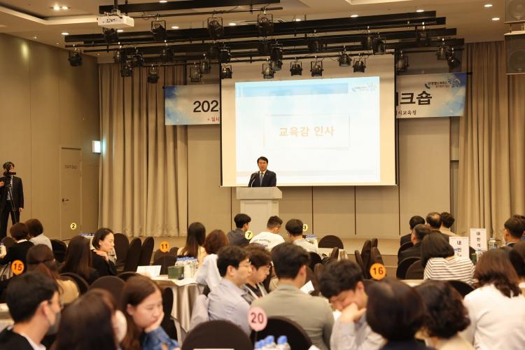 À̹ø ¿öÅ©¼óÀº ¡®±³»ç, ¼ö¾÷À¸·Î ¸»ÇÏ´Ù!¡¯¸¦ ÁÖÁ¦·Î ÆîÃÄÁ³´Ù. Âü¿©ÇÑ ±³»çµéÀº ¡ãÇÔ²² ³ª´©´Â ¼ö¾÷ ¼ºÀå À̾߱⠡㠼ö¾÷ ¼ºÀå »ç·Ê °øÀ¯ ¡ã¸ðµÎ°¡ ÇÔ²² ¸¸µé¾î°¡´Â ¼ö¾÷¼ºÀå ÀÎÁõÁ¦¿¡ ´ëÇÑ ½Éµµ ÀÖ´Â ³íÀǸ¦ ÁøÇàÇß´Ù.