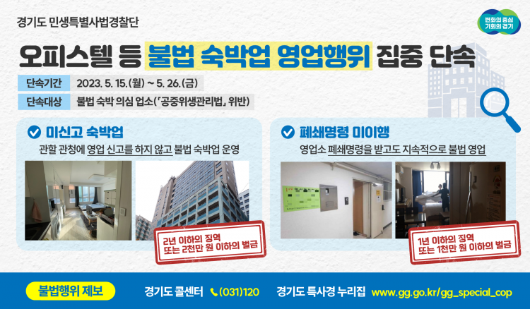 °æ±âµµ Ưº°»ç¹ý°æÂû´ÜÀº ´©¸®Áý(www.gg.go.kr/gg_special_cop) ¶Ç´Â °æ±âµµ Äݼ¾ÅÍ(031-120)·Î ºÒ¹ýÇàÀ§ µµ¹ÎÁ¦º¸¸¦ ¹Þ°í ÀÖ´Ù.