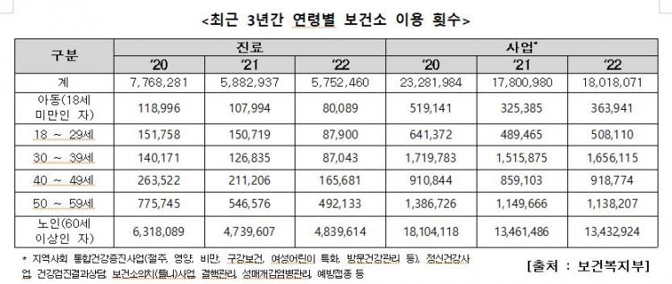 ±è ÀÇ¿øÀÌ º¸°Çº¹ÁöºÎ·ÎºÎÅÍ Á¦Ãâ¹ÞÀº ¡®ÃÖ±Ù 3³â°£ ¿¬·Éº° º¸°Ç¼Ò ÀÌ¿ë Ƚ¼ö' ÀÚ·á¿¡ µû¸£¸é, 60¼¼ ÀÌ»ó ³ëÀÎ ºñÀ²ÀÌ 20³â 77.7%, 21³â 75.6%, 22³â 74.5%·Î ³ªÅ¸³ª¸é¼ ¸ÅÇØ 70% ÀÌ»ó Â÷ÁöÇÏ´Â °ÍÀ¸·Î È®ÀεƴÙ.