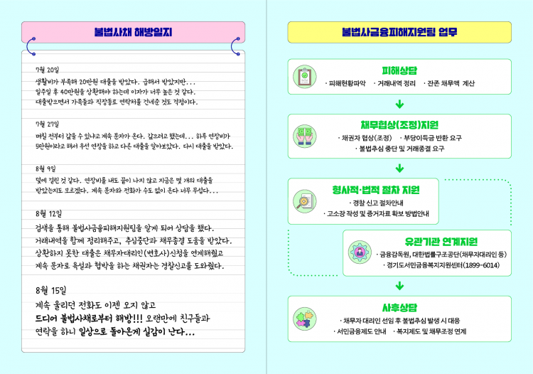 ºÒ¹ý »ç±ÝÀ¶ ÇÇÇØ·Î µµ¿òÀÌ ÇÊ¿äÇÑ °æ±âµµ¹ÎÀ̶ó¸é ´©±¸³ª ºÒ¹ý»ç±ÝÀ¶ ÇÇÇØ»ó´ã Áö¿øÀ» ¹ÞÀ» ¼ö ÀÖ´Ù. °æ±âµµ ºÒ¹ý»ç±ÝÀ¶ÇÇÇØ½Å°í¼¾ÅÍ (https://gfrc.gg.go.kr/) ¶Ç´Â ÇÇÇØ»ó´ã ÀüÈ(031-267-9396), īī¿ÀÅå »ó´ã ä³Î(°æ±âµµ ºÒ¹ý»ç±ÝÀ¶ ÇÇÇØ»ó´ã)À» ÅëÇØ »ó´ã°ú Áö¿øÀ» ¹ÞÀ» ¼ö ÀÖ´Ù.
